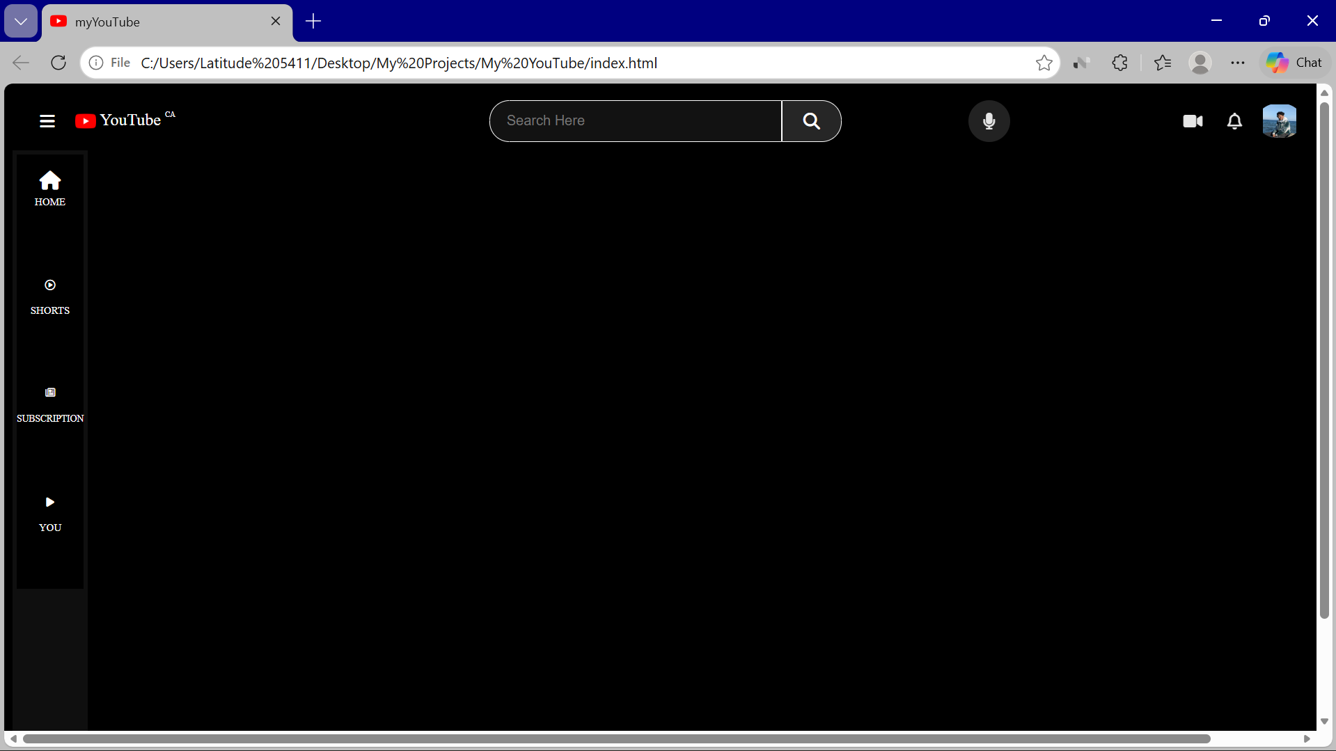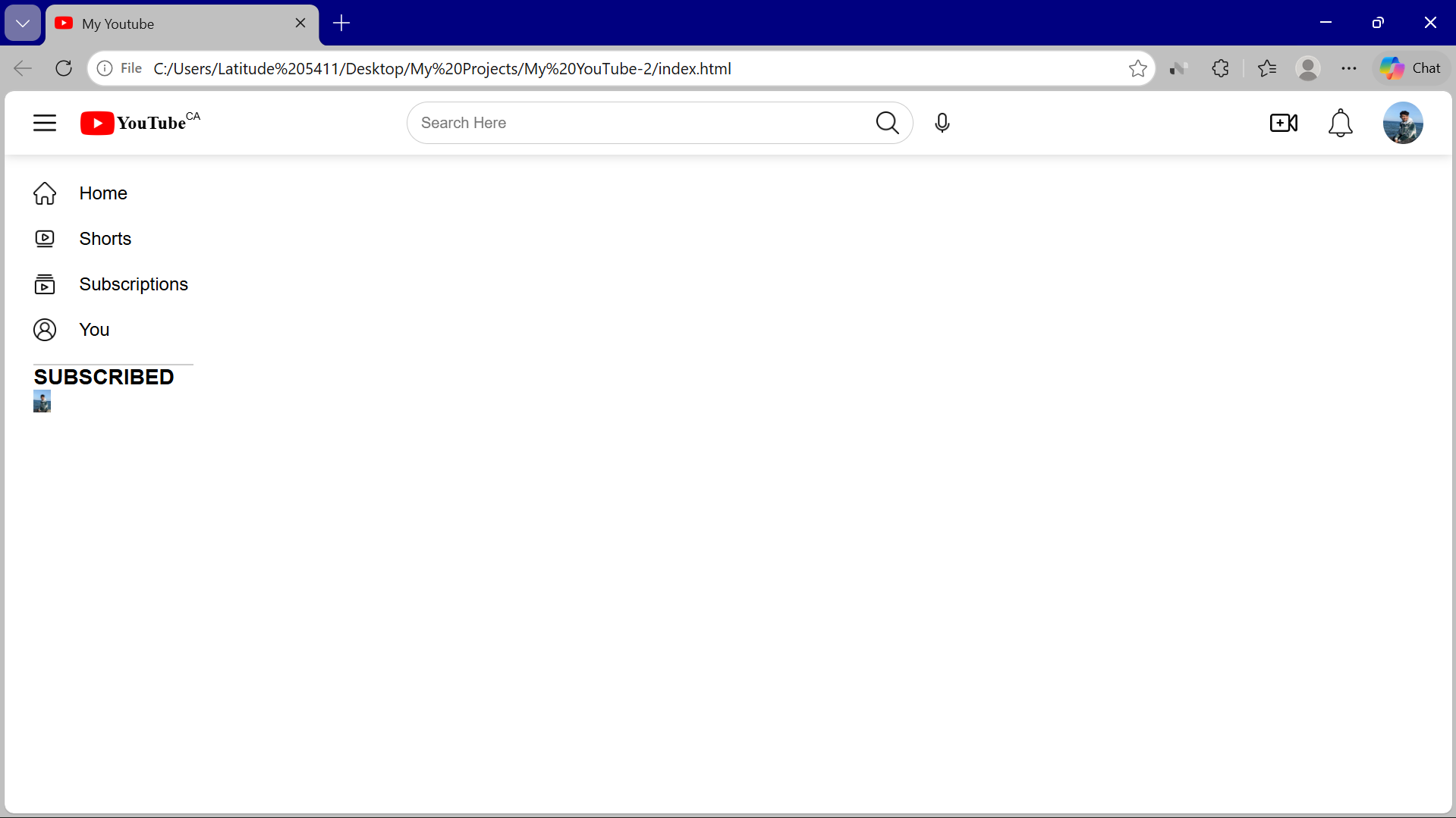 This is the project that I worked on during my learning phase. "YouTube Clone (Light Mode) - Just for practice." A front-end clone of YouTube focusing on layout design, navigation sidebar and responsive UI.