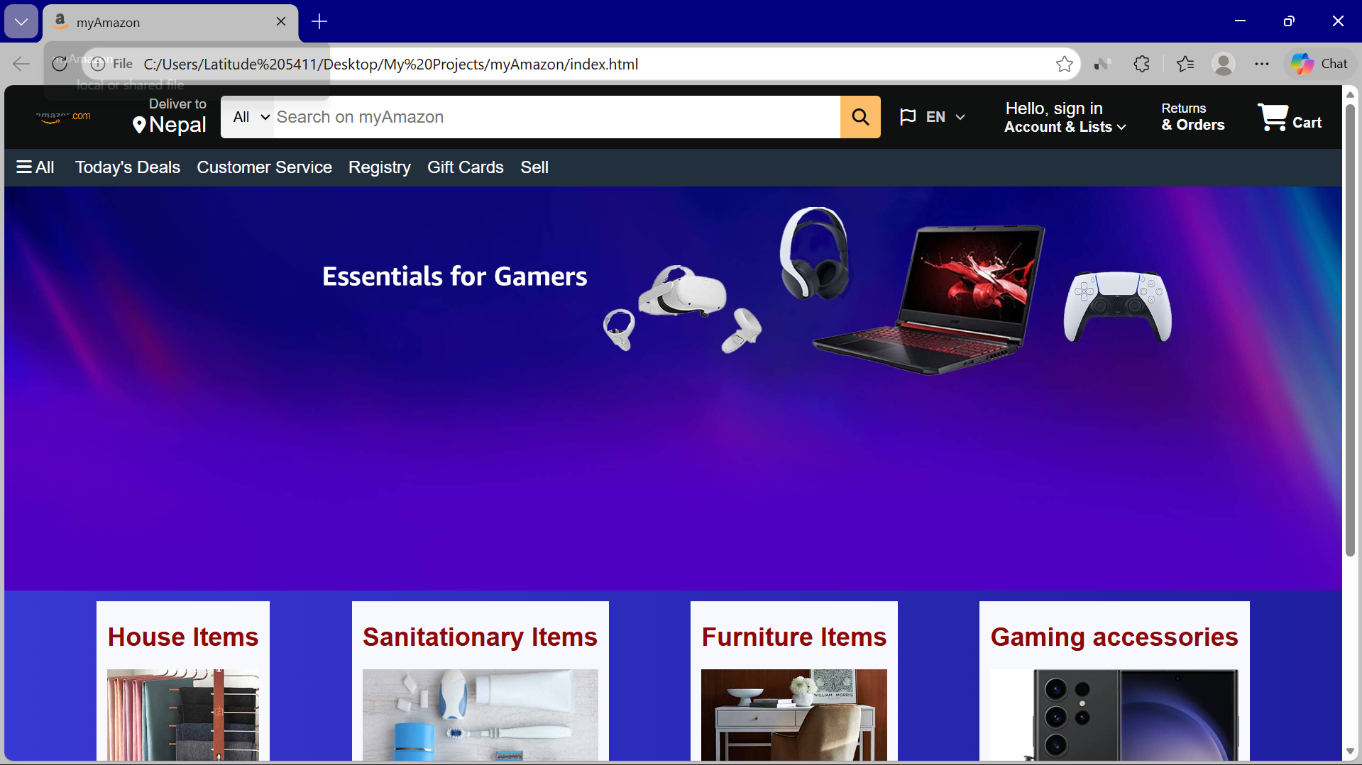 This is my 2nd clone site "Amazon-shopping site". An e-commerce style website inspired by Amazon with product sections, navigation bar and responsive design.